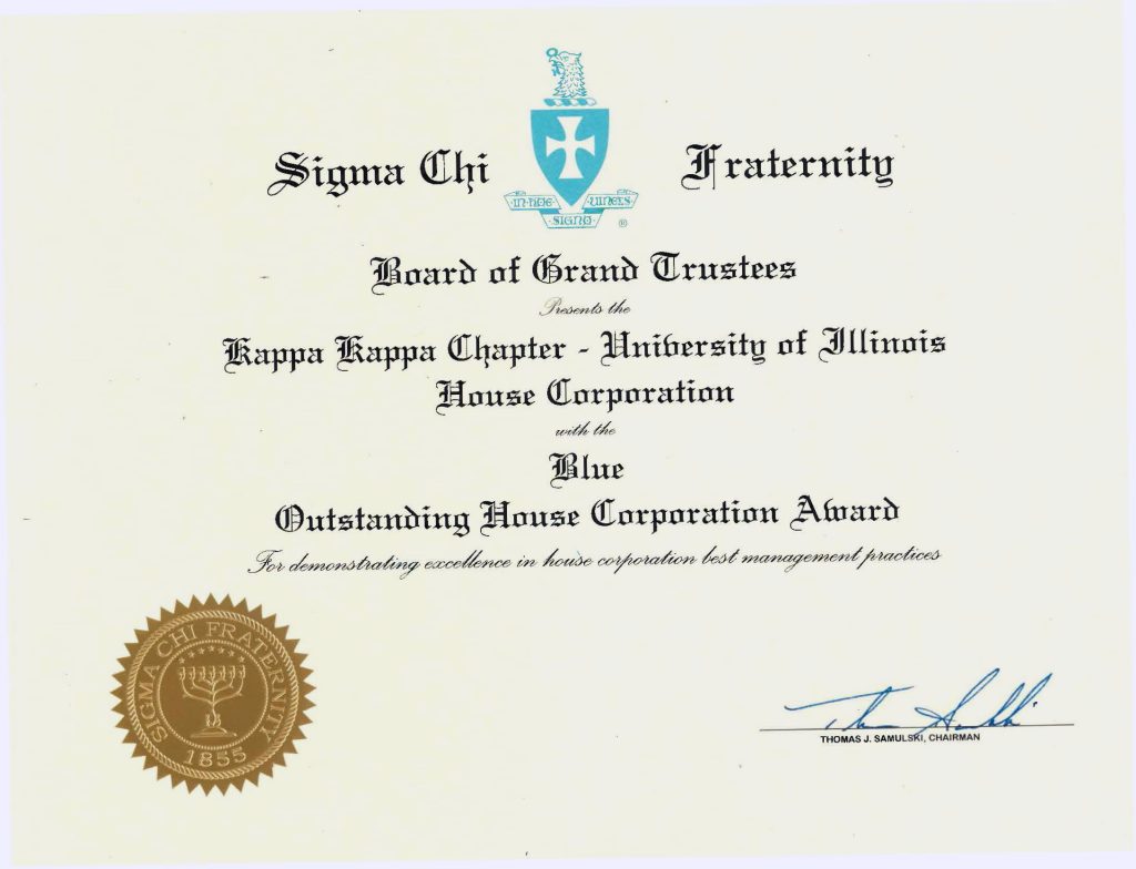 Congratulations to Kappa Kappa Corp of Sigma Chi for winning the 2024 Outstanding House Corporation Award from Sigma Chi Fraternity!